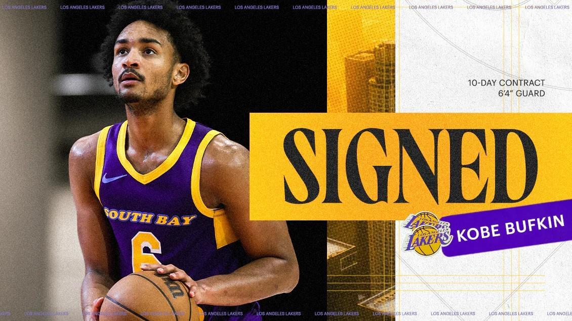 足球-科比来了!官方:湖人与科比-巴夫金签下10天短合同,后者穿18号